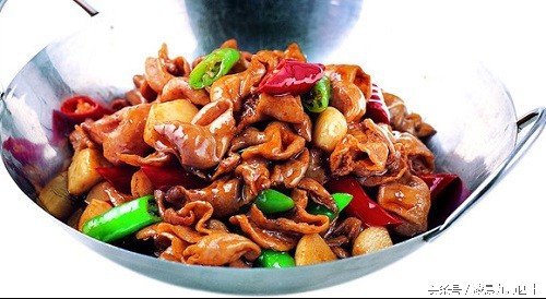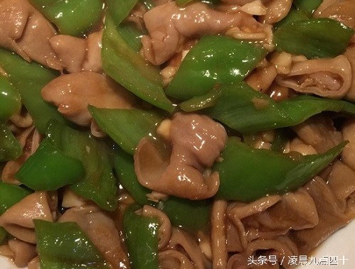 原料:猪大肠、青椒、葱、姜、蒜、油、盐、花椒、八角、酱油、料酒、水淀粉