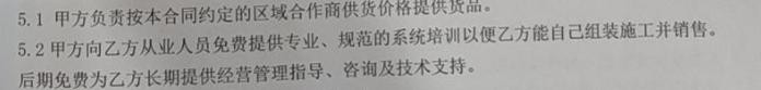 后期免费为乙方长期提供经营管理指导、咨询及技术支持。