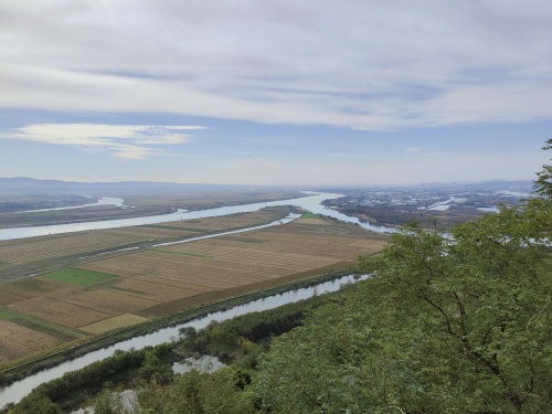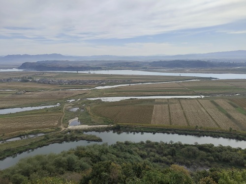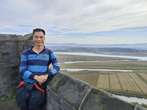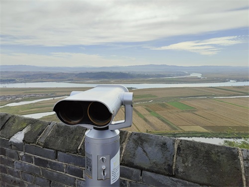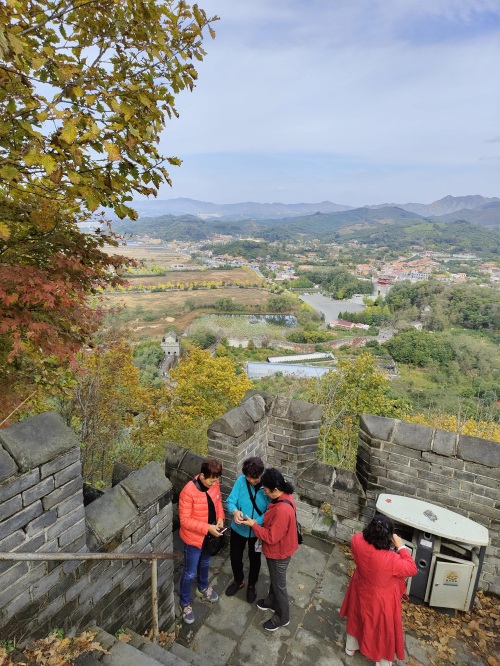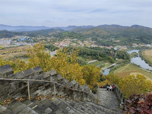 虎山长城之巅可一览中朝两国风光,对岸朝鲜田野山水更自然,更原始,更生态,更环保。