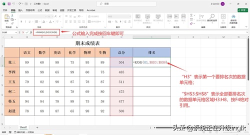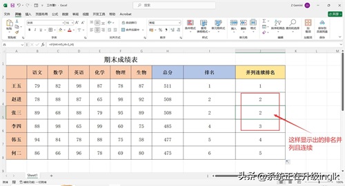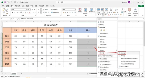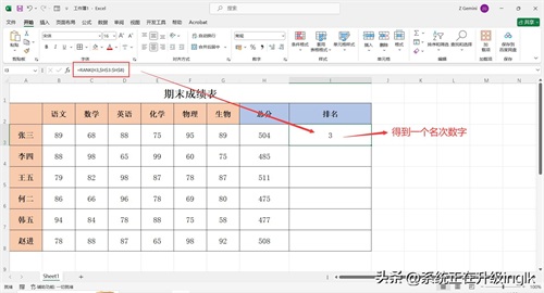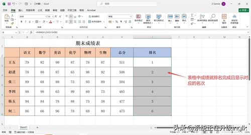 Excel表格如何给成绩排名次?