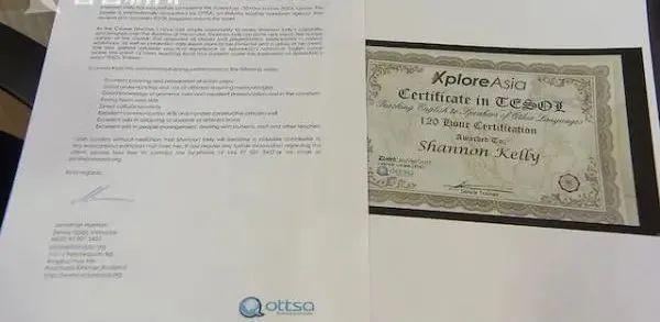经调查发现,一家在泰国曼谷的教育机构在其网站上写到:只要年满18岁,参加三周共120小时的课程,花费1120美金(约合人民币7200元),经官方认证,即可拿到“TESOL”证书。