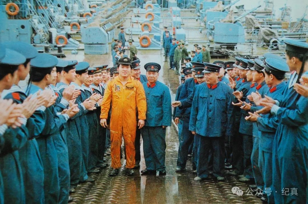 李大维驾机归来受到海军官兵的热烈欢迎