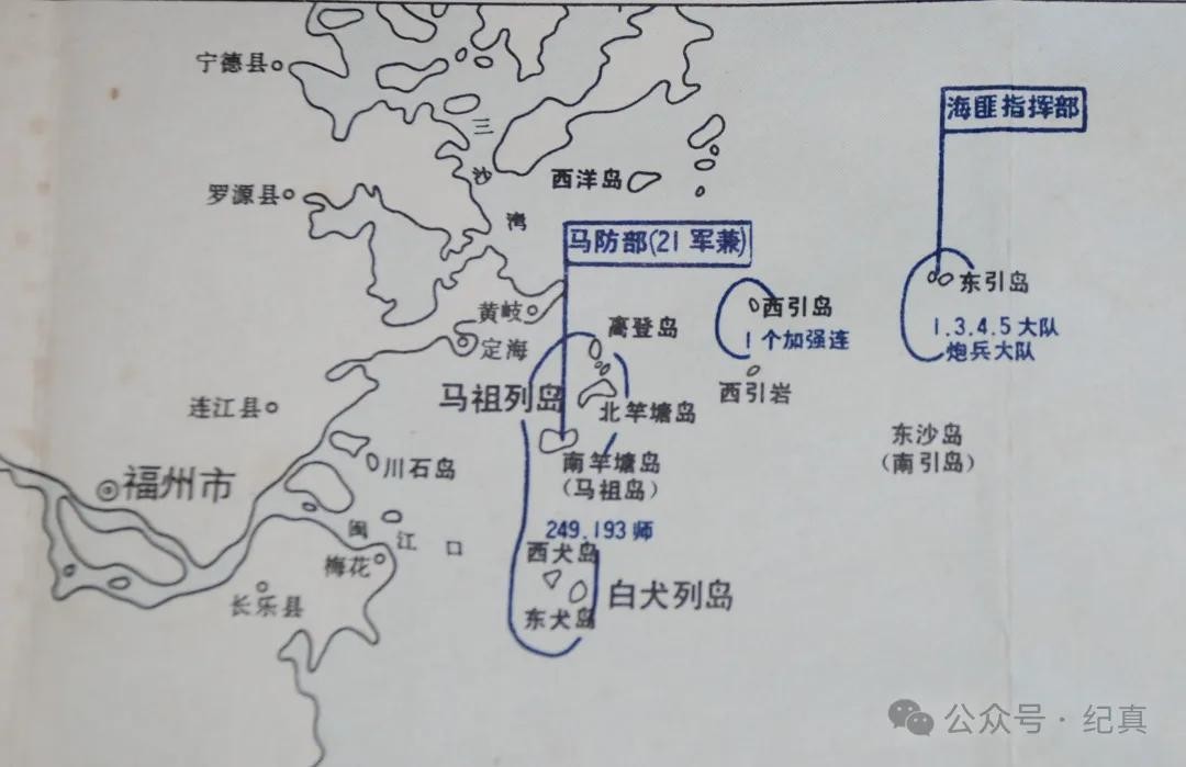 闽江口以东,横亘着马祖列岛。属“国军”马祖防卫部(第21军)驻守。有南竿塘(马祖)、北竿塘;西犬、东犬;高登、东引等九个岛屿。南竿守备区(马防部)有“国军”第21军军部、193师和249师的部队驻守。东引岛的东、西小岛,则分别驻守高炮四团的两个高炮连。这些都是行动前反复关注过的,必须绕开。