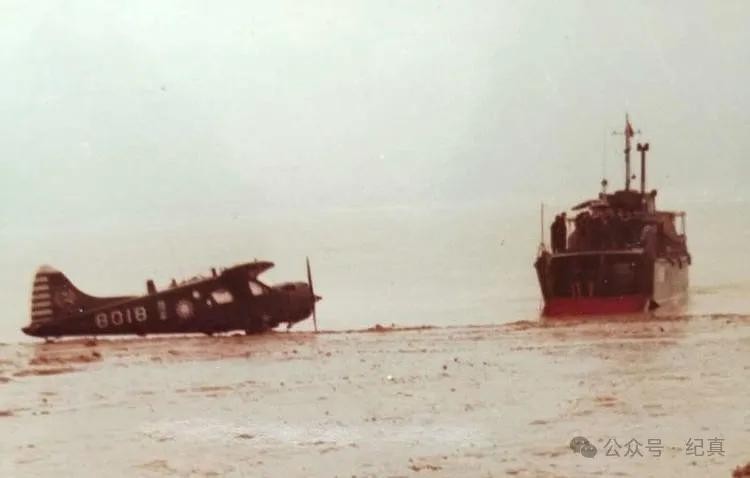 飞机降落在海滩上,涨潮时很快淹没。海军调来救援舰艇。