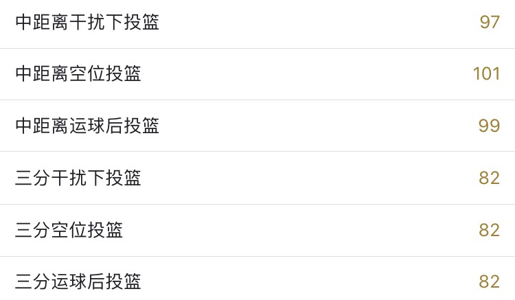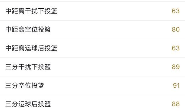 曾经的盖伊空位中投接近120,三分也有100左右,投篮包也是非常优秀,配上中距离徽章和底线三分徽章在锋线位置上担任定点投手一点问题没有,在准度上甚至不输给一些千万级别的球员,有着“平民杜兰特”的美誉。