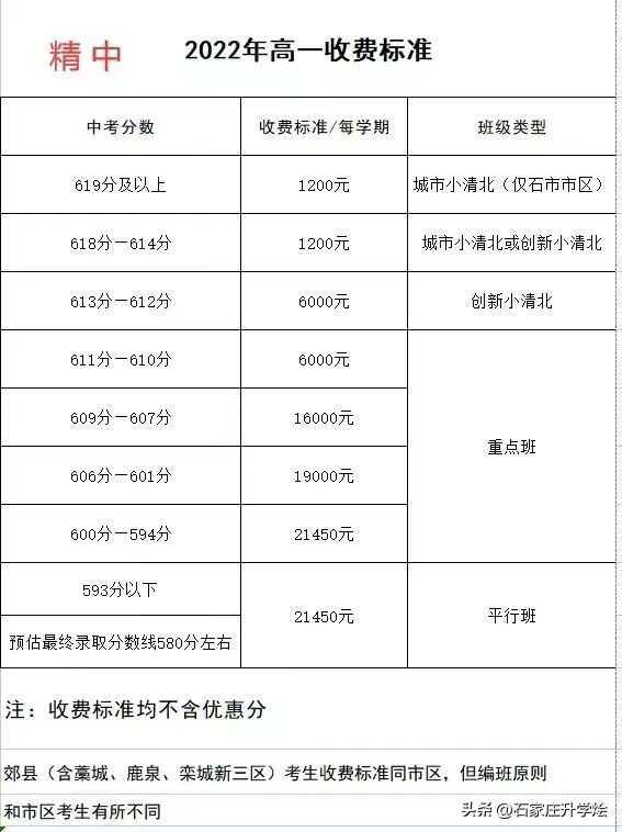 2023中考|石家庄各高中分数线汇总!收费、班型设置
