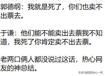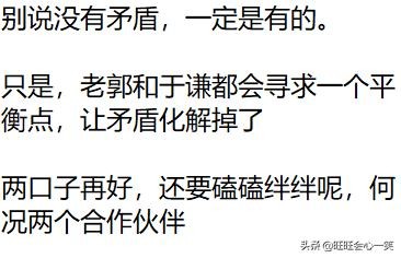 郭和于有没有矛盾不知道,但是俩人至少现在没掰,看上去关系还挺好的。要么就是俩人闹了也不影响关系,要么就是老郭真的怕把最后的防线也闹走了。