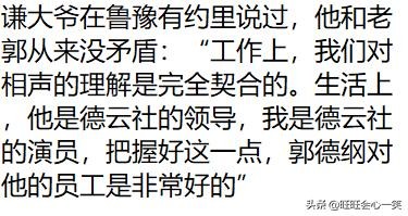 因为于谦贪心不大!他在合作伙伴和君子之交两者间踩对了平衡点。仅此而已。郭德纲的感恩是真的。