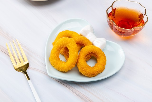 2. 享用:酥脆可口的洋葱圈,让人食欲大开,是一道不错的休闲小吃。