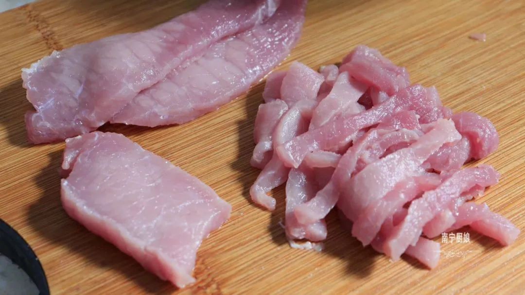 第一步:将猪里脊肉用清水洗干净以后,放在菜板上用刀切成丝装在小碗里,然后加入1勺盐和1勺玉米淀粉,用筷子搅拌成粘稠的状态,静置10—15分钟。