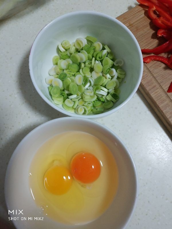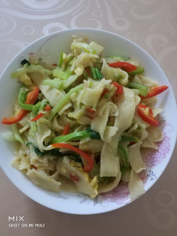 食材:豆饼丝,西葫芦,上海青,红椒,鸡蛋