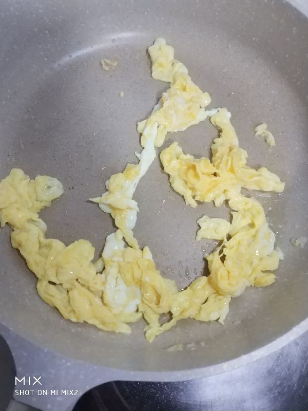 4,锅热倒油,放入鸡蛋液快速划散,成形后盛入碗内