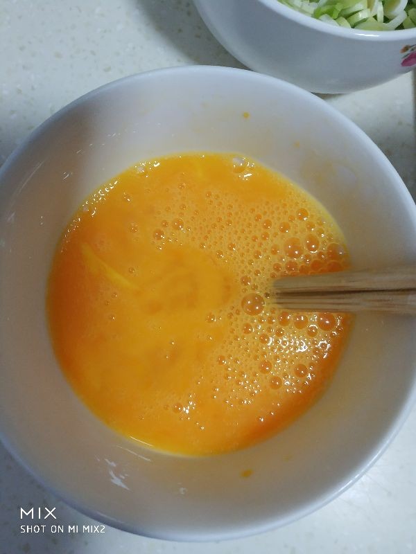 2,鸡蛋打入碗内,加适量的盐搅散,