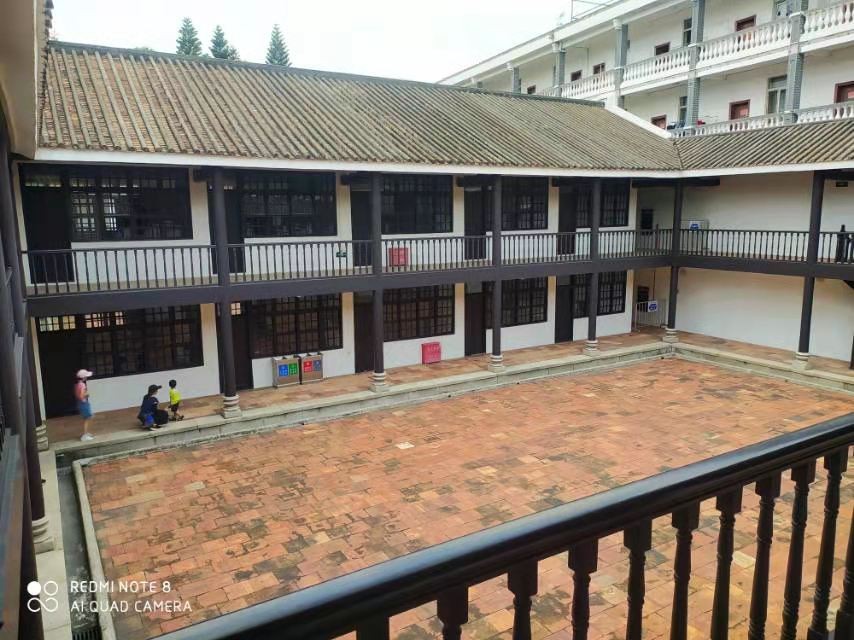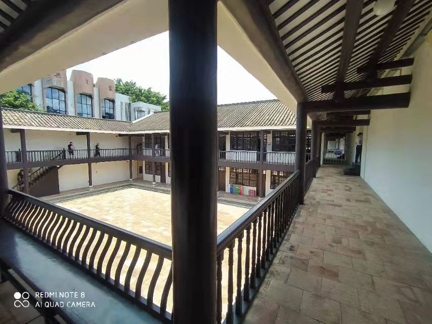 进入内部,就是由具有民国特色的二层砖木结构建筑围成的方型校舍,宁静而朴素。这类建筑现在仍能在国内其它城市见到,特别是在学校中能经常看见。