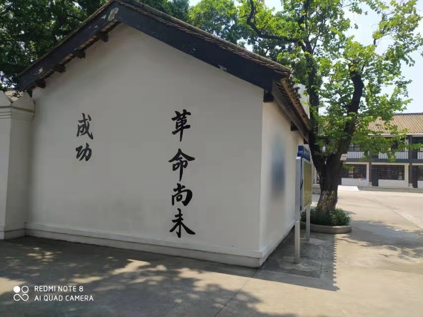 军校旧址占地面积并不大,虽然是周末,但人流并不多。正门两边墙上出自伟大革命先行者孙中山先生的标语特别醒目。