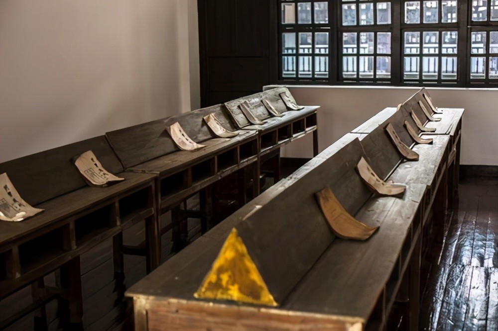 进入建筑内部,可分为教室、办公室、食堂、宿舍等 这是教师办公室。