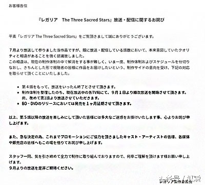 砍号从来:7月番《Regalia三圣星》宣布停播改造
