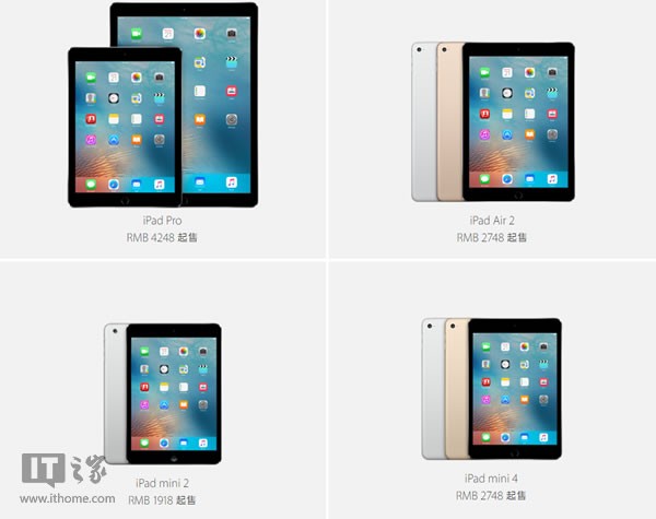 ▲iPad Pro售4248元起,iPad Air 2售2748元起,iPad mini 2售1918元起