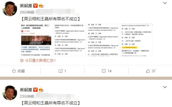 30、2020年3月19日,高云翔涉嫌性侵案宣判,法官当庭宣判高云翔、王晶所有罪名不成立。