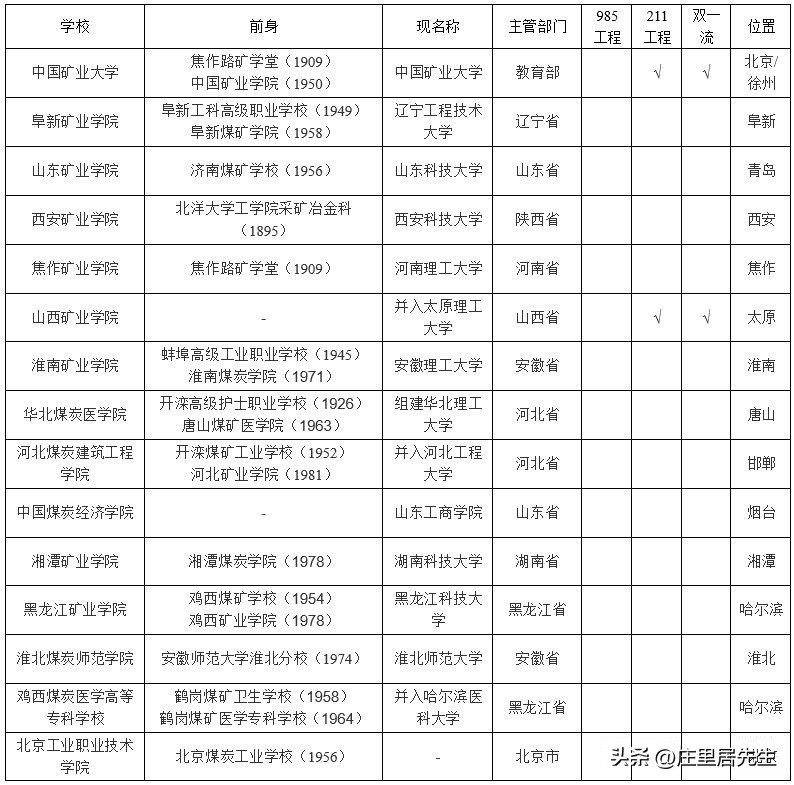 本期盘点一下原煤炭工业部直属高校如今都去哪了,各自发展如何。