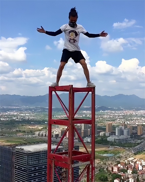 从那时起吴永宁开始尝试更多惊险刺激的高空挑战。他的视频风格直接而大胆,每一次都在挑战观众的心理极限。