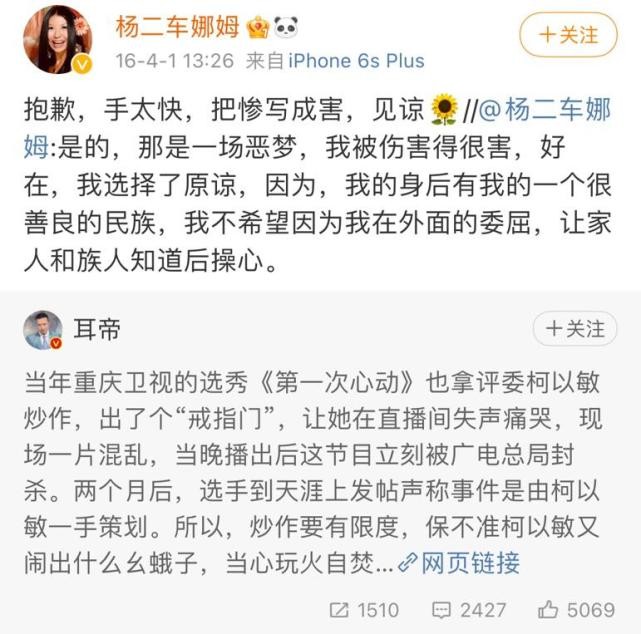 2016年,杨二车娜姆在微博上重提当年的戒指门事件,似乎仍心存芥蒂。
