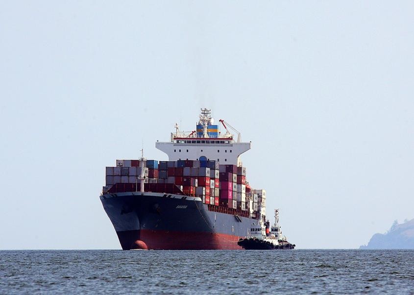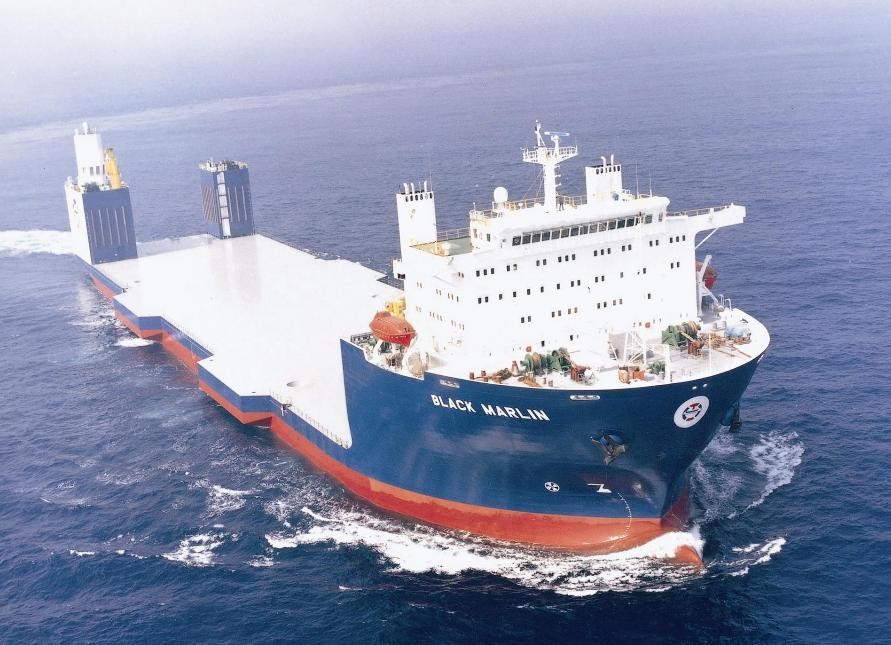 由于它的货舱装载了各种汽车、货车以及货物。