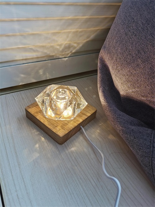 心心念念等了两天终于收到了底座,迫不及待的插上电源,配上玻璃晶体,打开灯的一刹那,呼吸都停止了。天哪,太好看了吧。光源从玻璃体中穿透而出,通过折射光的颜色和路径都发生了变化,四周的光影变得斑驳起来,颇有点秋瑟的意味。