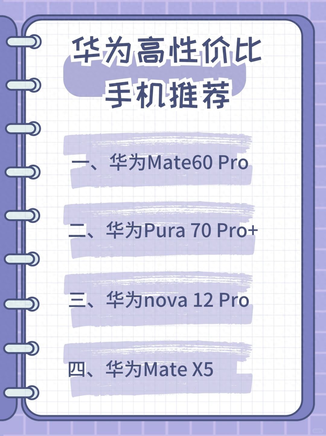- **推荐理由**:Mate X5作为一款折叠屏手机,在保持高性价比的同时,提供了出色的屏幕体验、拍照能力和性能表现,适合喜欢折叠屏设计的用户。
