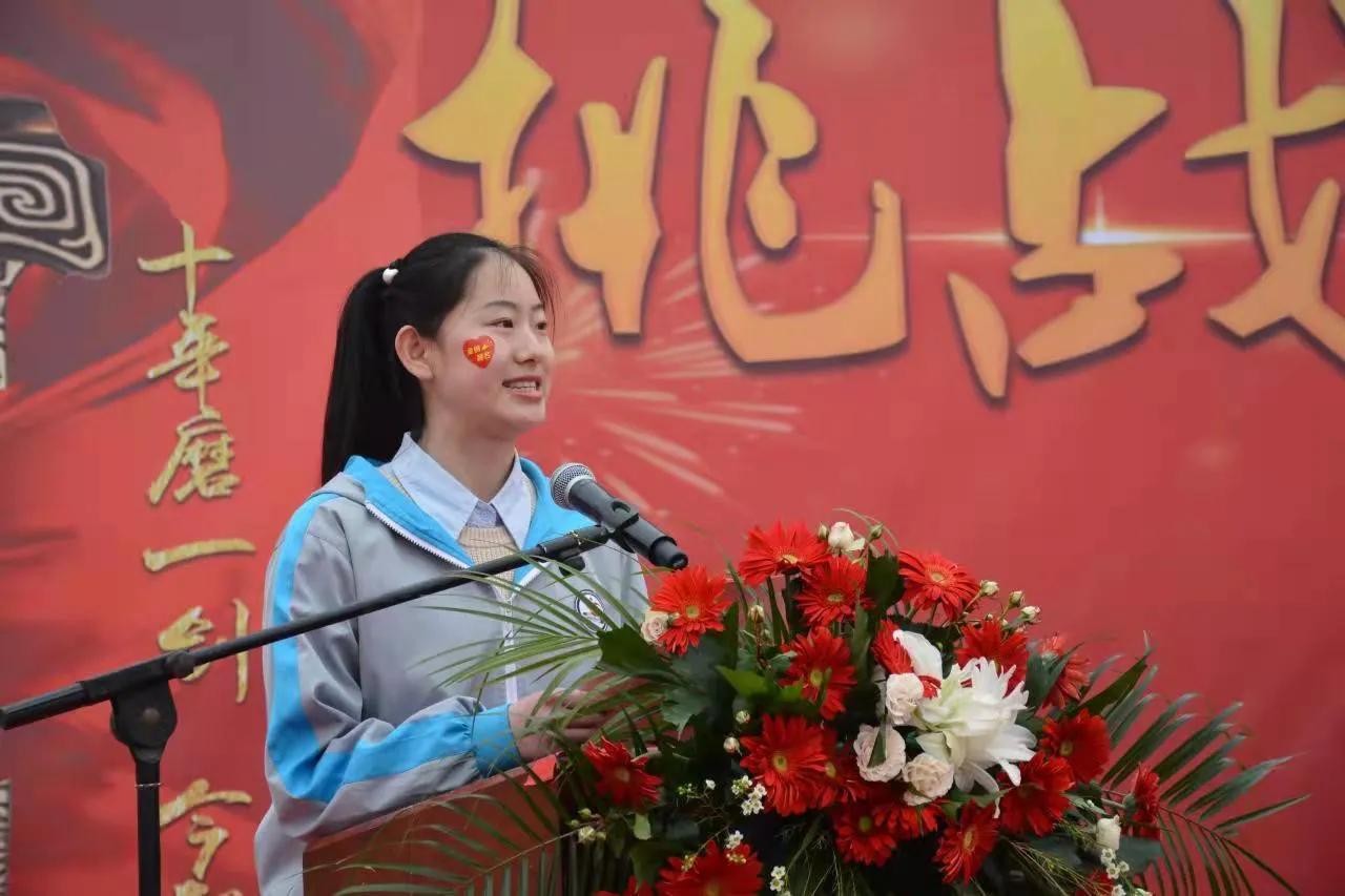 学生代表王如钰发言,18岁谷爱凌实现了奥运梦,18岁的我们也会实现高考梦,要用快乐迎接高考,用沉稳对待学习。生逢盛世,当奋斗其时,今朝为我少年郎,敢为天地试苍茫。