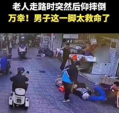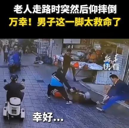 这一脚伸得太帅了!男子英勇垫脚救摔倒老人