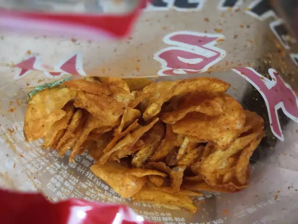 现在网上也能网购到,比一般薯片要脆,酥酥脆脆,特点就是土豆片外层会撒上一层辣椒面,越嚼越香,喜欢吃辣味的福音了,我超爱,追剧佳品了。