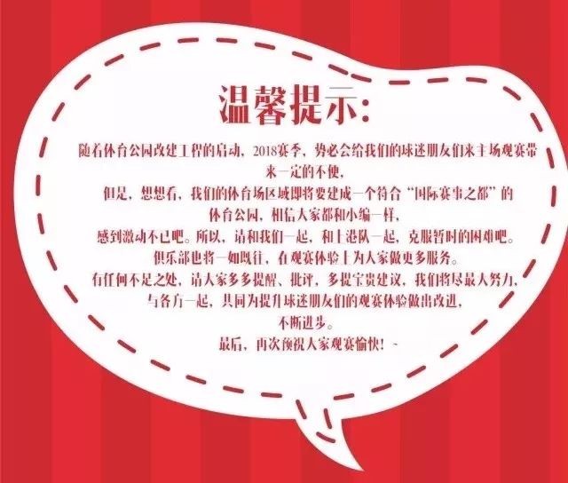 希望所有球迷朋友和俱乐部一起,为建设更加美好的城市做出贡献,在这一个特殊的年份里,多一些理解和宽容。