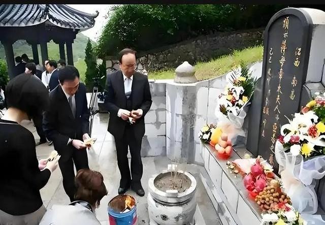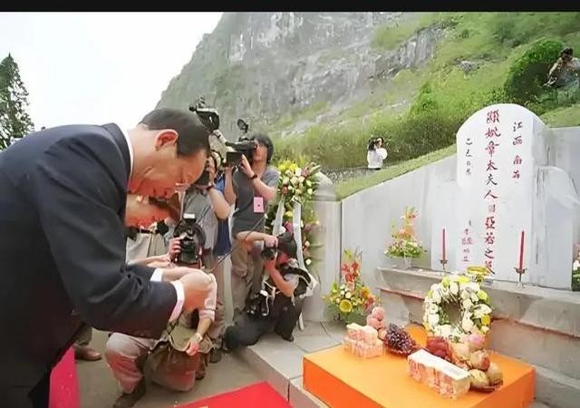 2005年,蒋孝严祭母的留影,这是他首次以蒋家人身份回大陆扫墓