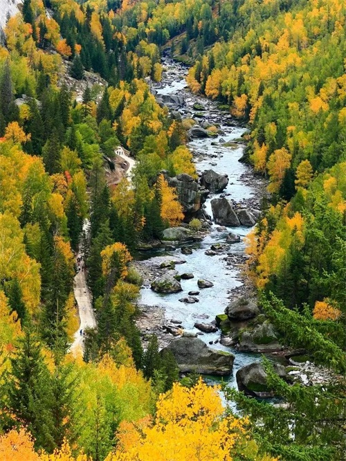 可可托海风景区,位于新疆阿勒泰地区富蕴县,占地面积788平方公里,距乌鲁木齐485公里,距富蕴县城53公里。
