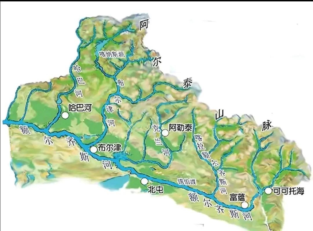 在阿尔泰山南麓富蕴县可可托海镇东北5km 处。额尔齐斯河上游凸岸的滩地上。