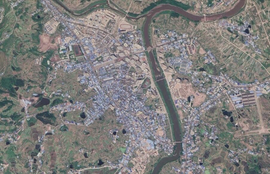 卫星上看重庆开州临江镇:开州最大的镇,有很多栋高楼