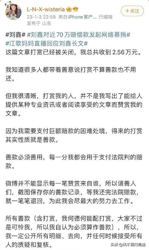 刘暖曦先是在微博上发起募捐,账号被禁言后,又火速重开新账号,当天即再遭封禁。