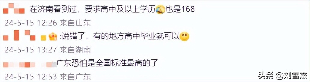 还有一部分网友觉得标准高了,表示“且不说168,广东要求还算高了要本科,有的地方大专就可以”,“别说大专 武汉165以上高中或者中专就可以 不知道定规定的人怎么想的 根本没有要求”,“怎么纹身影响精子?”