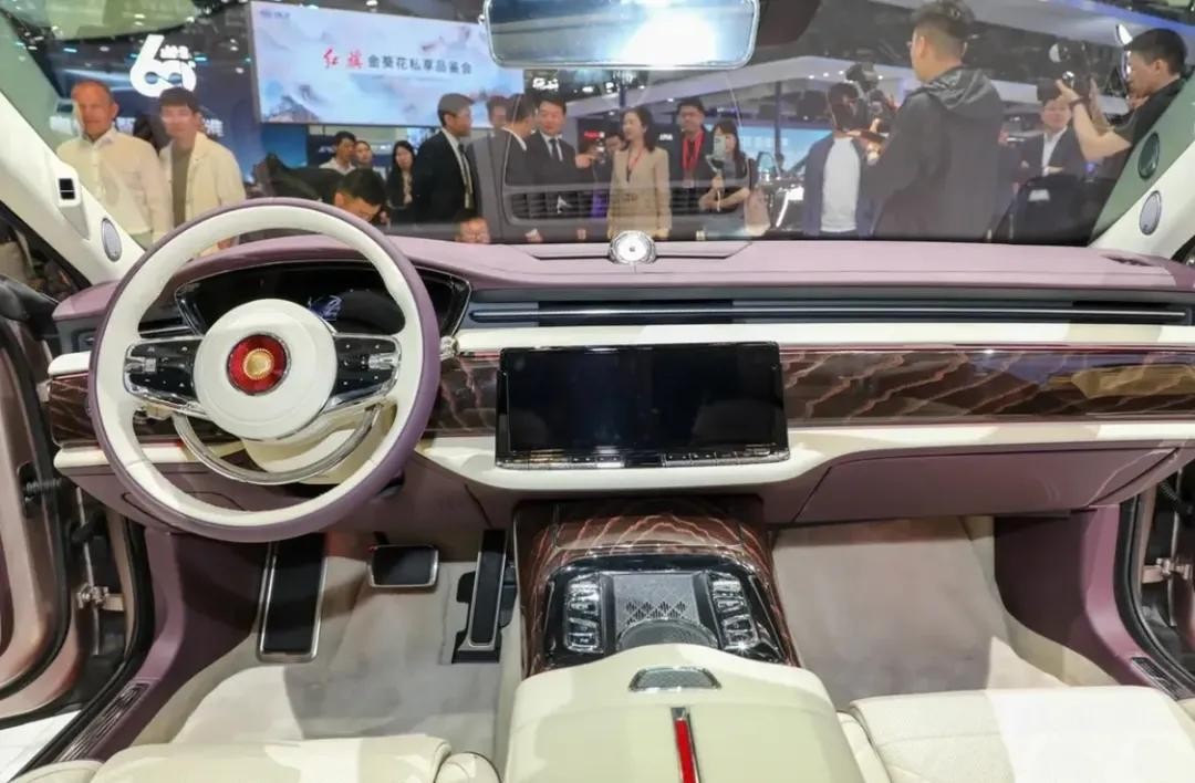 这方面红旗做的比较好。10月30日神州十九号发射成功,礼宾车由原来的丰田考斯特换成了红旗国悦新能源,座椅是织物座椅。广州车展首展价值140万的豪华轿车红旗国礼使用的是非遗传承的大漆工艺和刺绣。在中国,豪华座椅从来不是什么头层进口小牛皮,而是刺着金葵花的顶级丝绸。