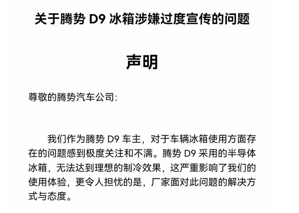 2023年,近50万售价的腾势D9被消费者集体投诉,原因是使用了廉价的汽配城风格车载冰箱。
