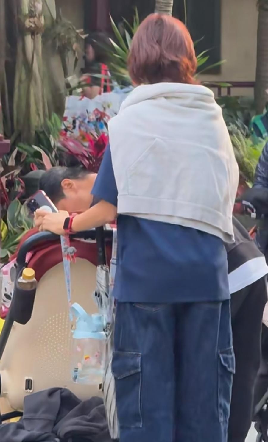 在网友拍的视频里,蔡少芬推着婴儿车,她的身影高挑纤瘦,特别显眼。