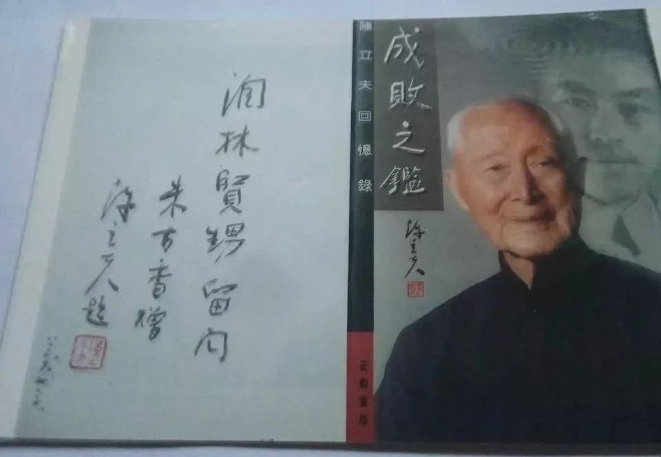 ▲ 《成败之鉴——陈立夫回忆录》“润林贤甥留阅——陈立夫题” 陈立夫(1900-2001,陈果夫之弟)