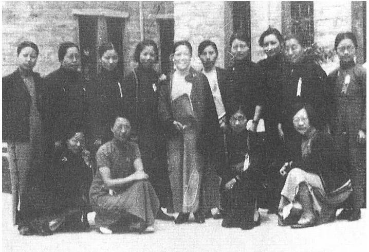 ▲ 1938年在庐山妇女座谈会后合影,前排右一为俞庆棠,后排左四为邓颖超,右三为宋美龄。