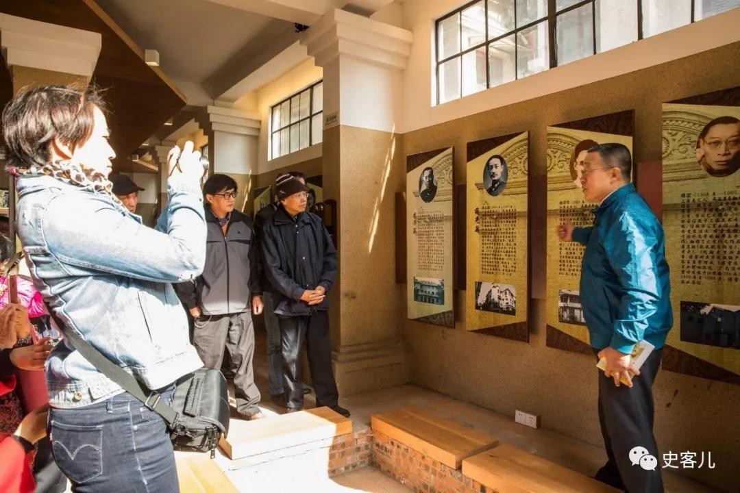 ▲ 2017年1月13日,在上海愚园路1065号《历史名人墙》,俞梅荪向上海高校历史学习班一行30人,介绍祖父俞颂华的往事。