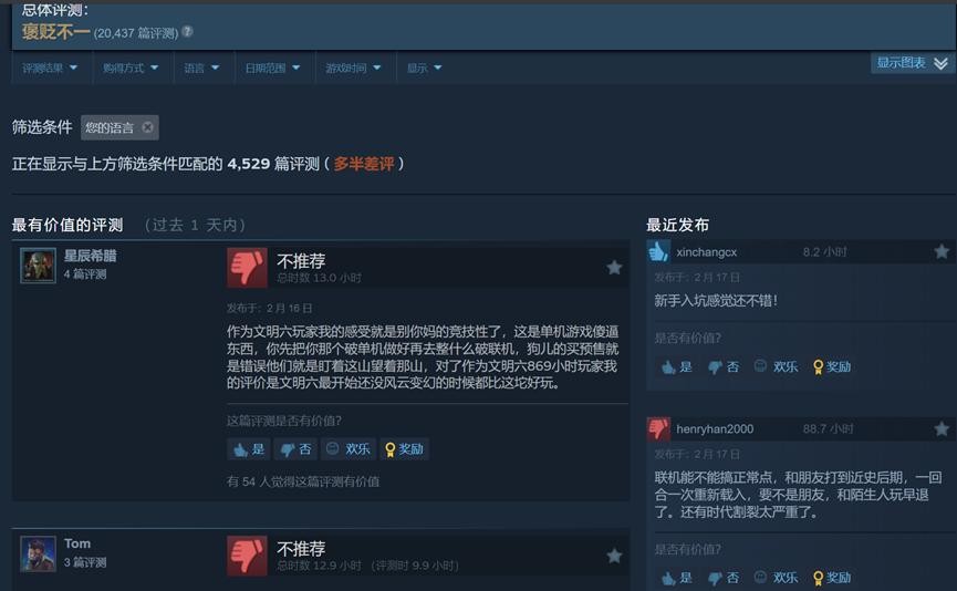孔子再强,也拦不住中国玩家在Steam上给这代的《文明》打出“多半差评”。