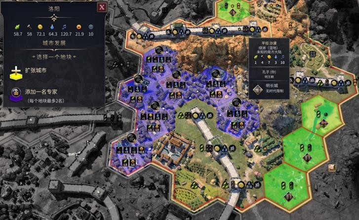 比如你在汉朝时候修长城,到了明朝还能继续修长城。若把长城修成一片,还能获得额外文化点数和金币产出加成。