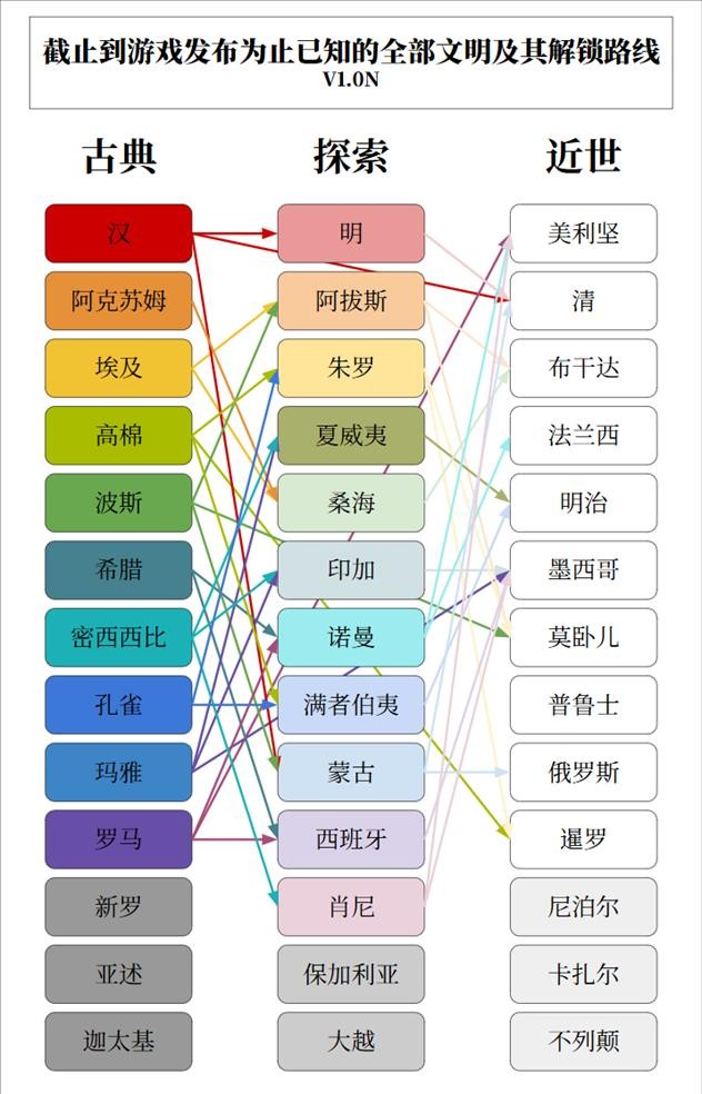 大多数文明只有一个时代的戏份,比如古希腊和古罗马只能在古典时代出场,西班牙帝国和印加帝国则绝对活不到近代。
