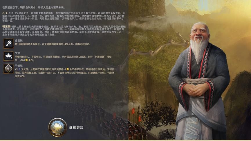 毕竟没有哪个文明不需要人口和科技,所以孔子其实也不必绑死中华文明,他就属于那种朴实无华的万金油领袖,前期后期都有作用,搭配各种文明玩起来都舒服,十分适合新老玩家熟悉游戏机制。
