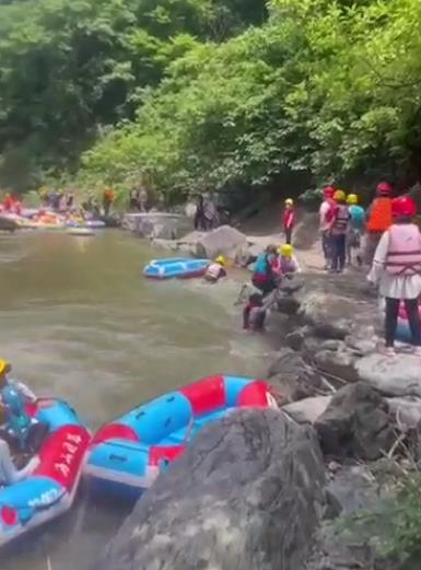 三门峡一景区游客在漂流时,被卡在漂流赛道,撞上前方的漂流船后,双双落水。该漂流项目位于河南三门峡仰韶仙门山旅游景区。漂流船上的游客落水后,漂流船倒扣在两人头上。